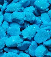 Sirop de glucose, sucre, eau, gélatine de boeuf Halal, amidon modifié de pomme de terre, acidifiants : E330, E270, pectine, arôme artificiel, colorant E133.